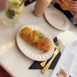 Maison Blacker also offers a delightful BRUNCH menu, including a Red fruit bowl with homemade red fruit compote, yogurt, and granola, and a Brioche Perdue Nutella with brioche French toast, Nutella coulis, and hazelnut crumbs.
